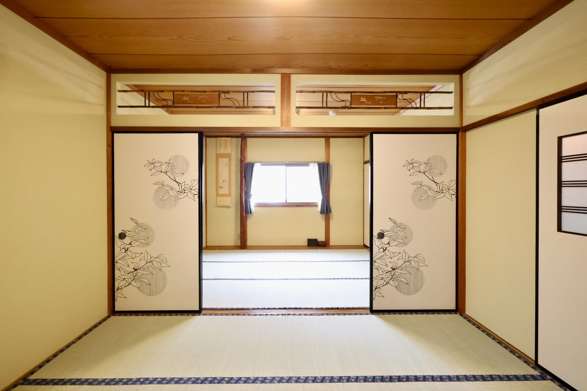 二階は、6畳間の和室が2部屋あります。襖で仕切られたお部屋で、お布団(羽毛布団)でお休みいただきます。