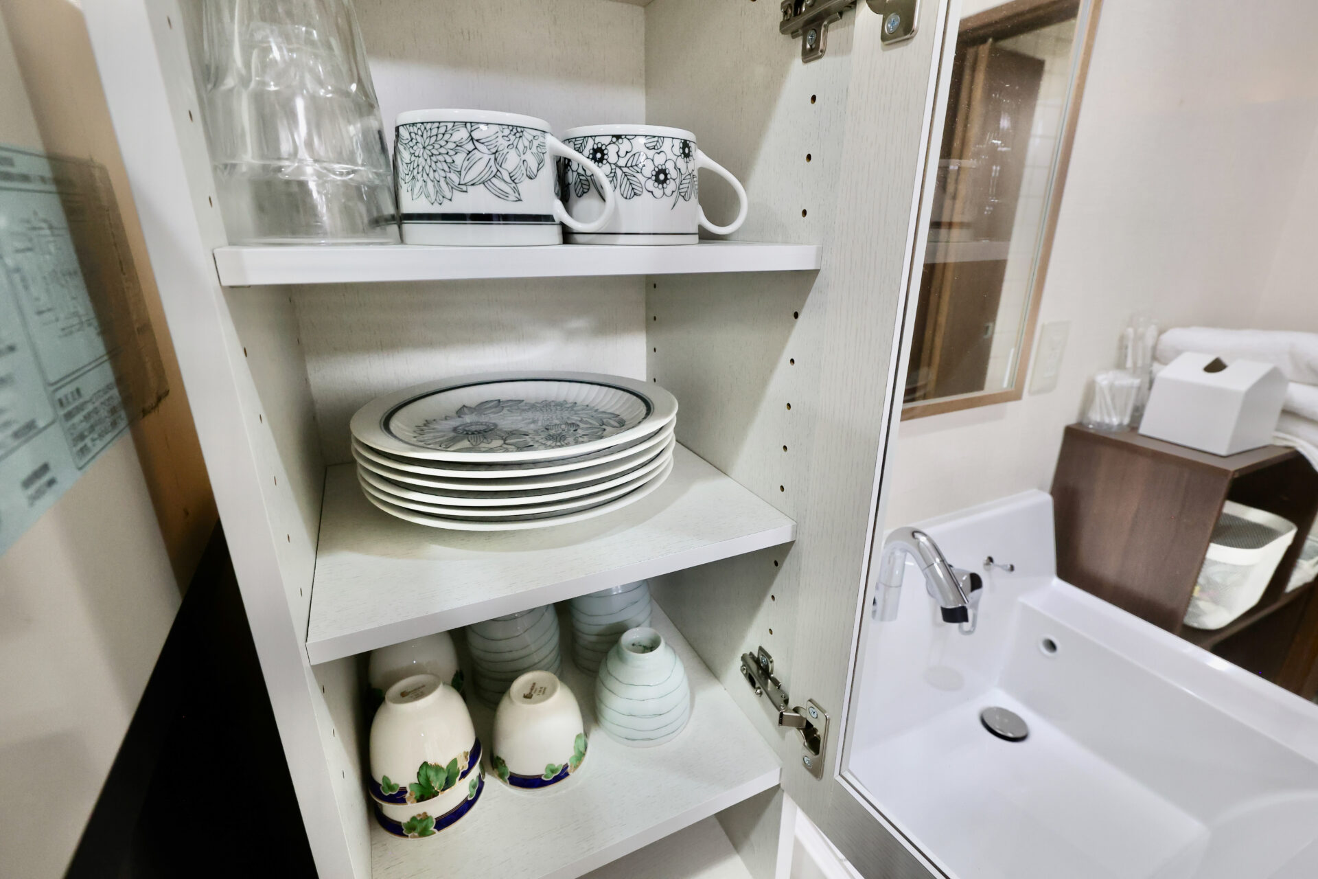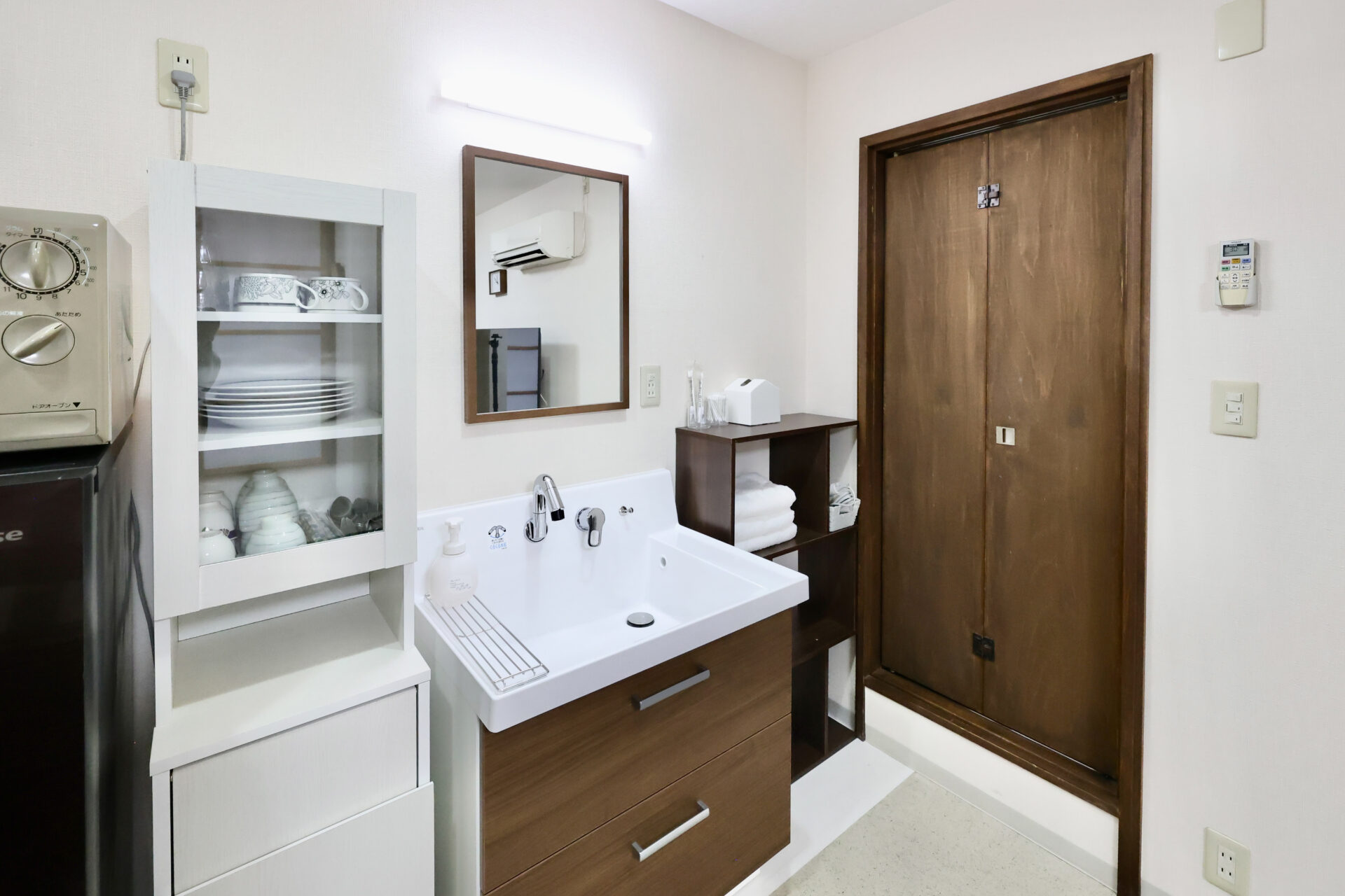 インターネット接続(無線LAN形式)、冷凍冷蔵庫、電子レンジ、電気ケトル、調理器具、食器類、お茶セット(郡上の湧水、郡上産ほうじ茶パック、ドリップコーヒー)がございます。